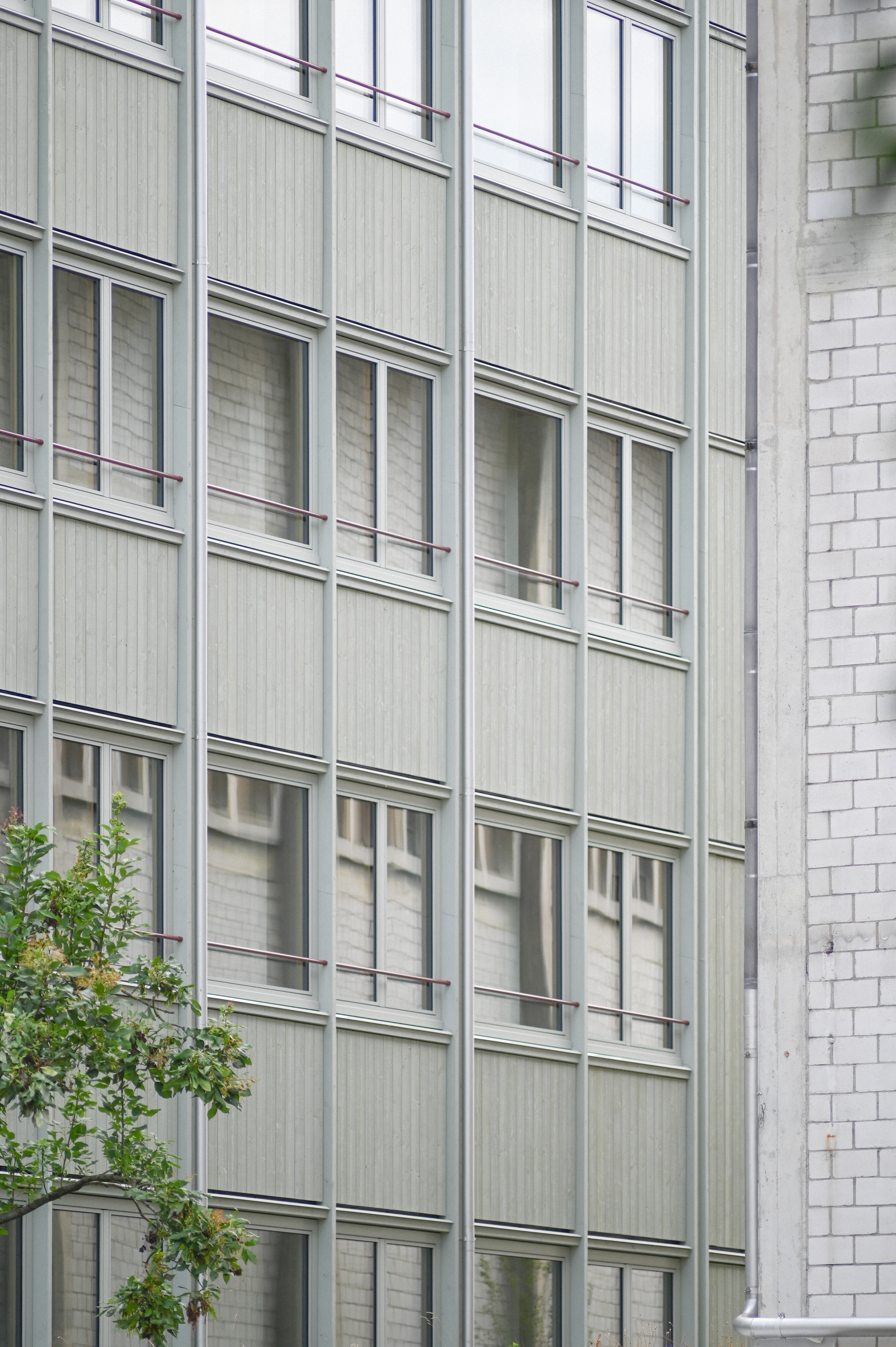 The existing concrete structure from the 1960s receives both a new interior and a new skin that represents the building's new function in the city. However, the two main facades to the south and to the north, are treated differently according to their function and context.
